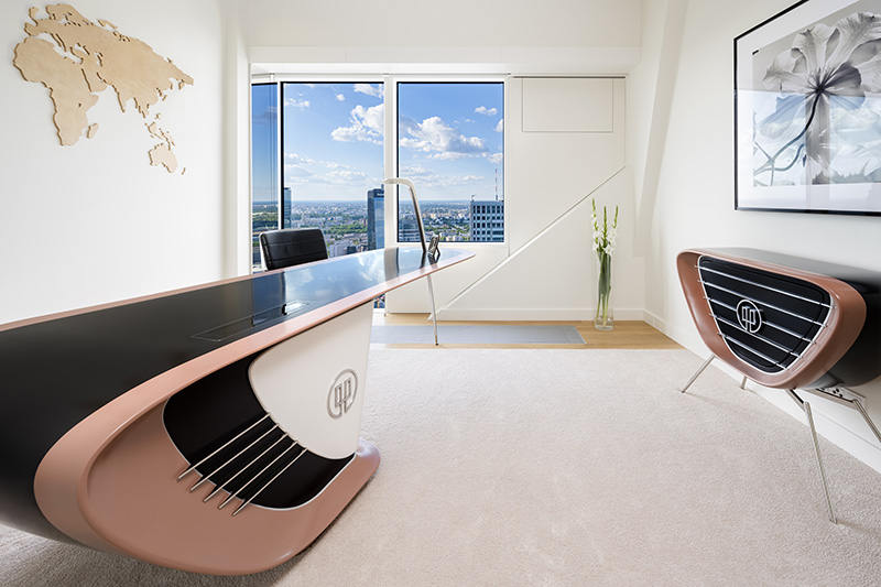 Bezgraniczna wyobraźnia i pasja do meblarstwa, którą kieruje się zespół RC Design, potwierdzają, że powinniśmy tworzyć meble, wychodzące poza standardy. Doświadczenie i wiedza na temat rozwiązań czy materiałów stosowanych w meblarstwie są imponujące. GO.CEDesign to marka, która stanowi odpowiedź na potrzeby najbardziej wymagających klientów na rynku dóbr luksusowych. Produkcja linii mebli, którą podziwiać można w apartamencie na 43. piętrze, rozpocznie się pod koniec tego roku. ZŁOTA 44 to miejsce gdzie nasze prototypy ujrzały światło dzienne. – mówi Hernan Gomez, właściciel kreatywnego biura projektowego Studio Gomez, projektant mebli GO.CEDesign.