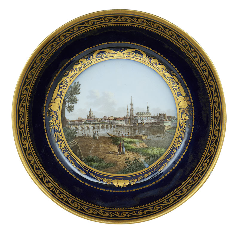Filiżanka ze spodkiem z widokami Miśni i Drezna, Królewska Manufaktura Porcelany w Miśni, ok. 1800 r.