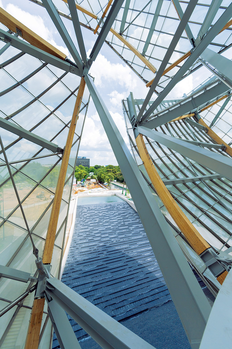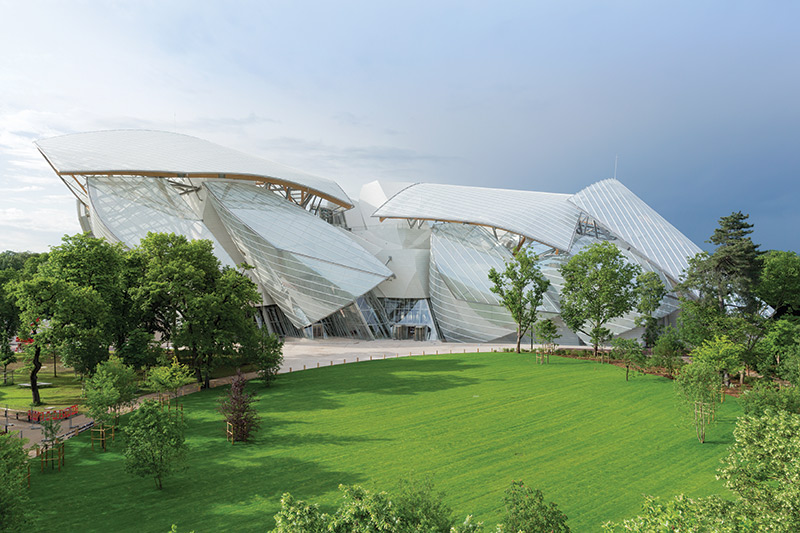A czym ma być? Domem dla słynnej kolekcji dzieł sztuki, gromadzonych latami przez Fundację. Na początek jednak urządzono tam wystawę makiet architektonicznych, stanowiącą podsumowanie wieloletniego dorobku autora i swoisty benefis jego twórczości. W celu zachowania swoistej, politycznej poprawności sam Frank Gehry utrzymuje, że paryski projekt został zainspirowany strukturami Jardin d’Acclimatation (tak nazywa się miejscowy park rekreacji i rozrywki) oraz szklarniami, które stały wcześniej na tym miejscu. Odwołuje się do myśli Marcela Prousta i form Beaux-Arts rodem z XIX-wiecznego Paryża. Gehry twierdzi, że projekt służy dwóm różnym doświadczeniom wizualnym: kameralnemu oglądowi artefaktów wewnątrz i podziwianiu rozległych perspektyw Paryża z tarasów na dachu – łącznie z widokiem na wieżę Eiffla. Na ziemię sprowadza nas dopiero umieszczone nad głównym wejściem logo Fundacji, zaprojektowane w niepozostawiającej wątpliwości formie wysadzanej diamentami broszki.
