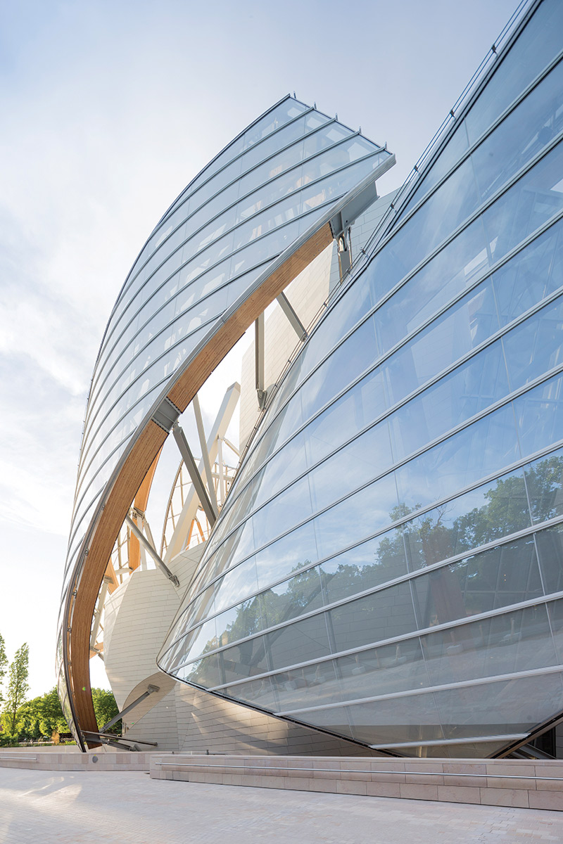 Czym jest, a czym ma być ten niezwykły obiekt? Jak to zwykle bywa w wypadku Franka Gehry’ego, budynek Fundacji Louis Vuitton jest niewątpliwie gigantyczną rzeźbą umieszczoną w kontekście zielonego krajobrazu. Jej „twarde jądro” otaczają brawurowo skonstruowane szklane formy, nawiązujące do idei płatków kwiatu lub, jak kto woli, wydętych wiatrem żagli (rzucając tym samym wyzwanie innej ikonie światowej architektury, słynnej Operze w Sydney). Odwołuje się przy tym do rozmaitych metafor natury i geologii, jak góry lodowe, kaniony i groty. Budynek cały stoi w wodzie, w czymś w rodzaju sztucznego jeziora z kaskadą, która wpływa do jego wnętrza.